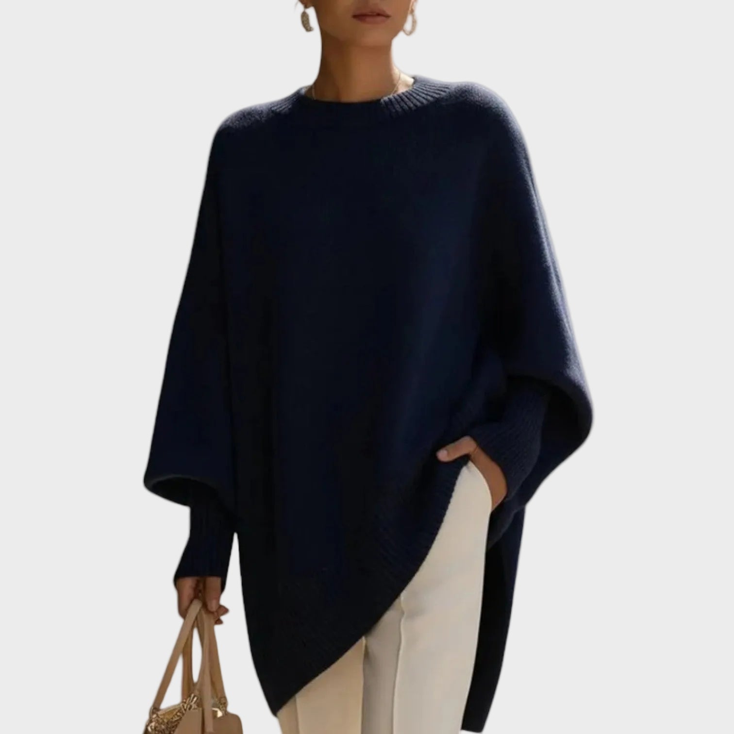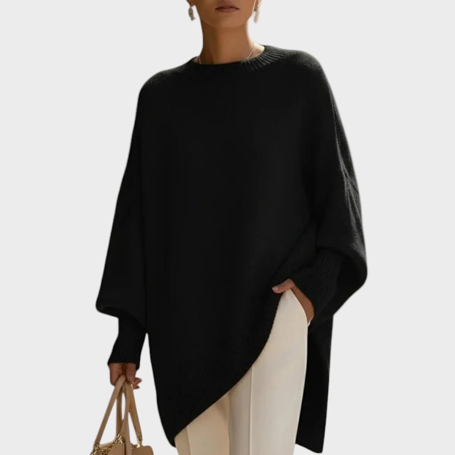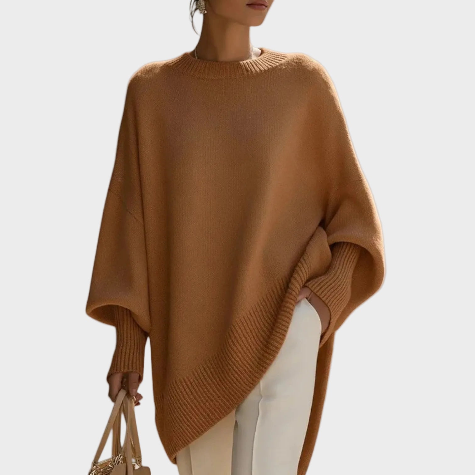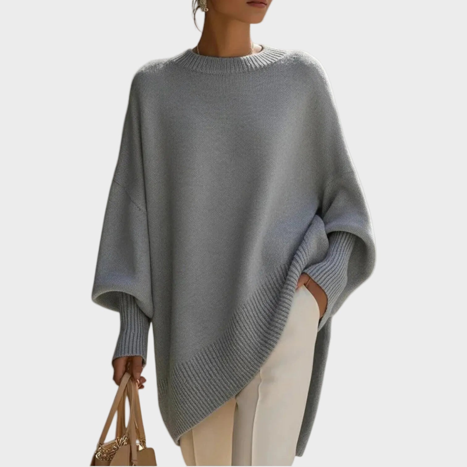 Fin teksturiran material in sproščen kroj puloverju dajejo umirjeno, moderno podobo. Tako nastane stilska celota, ki se počuti naravno in neopazno.
