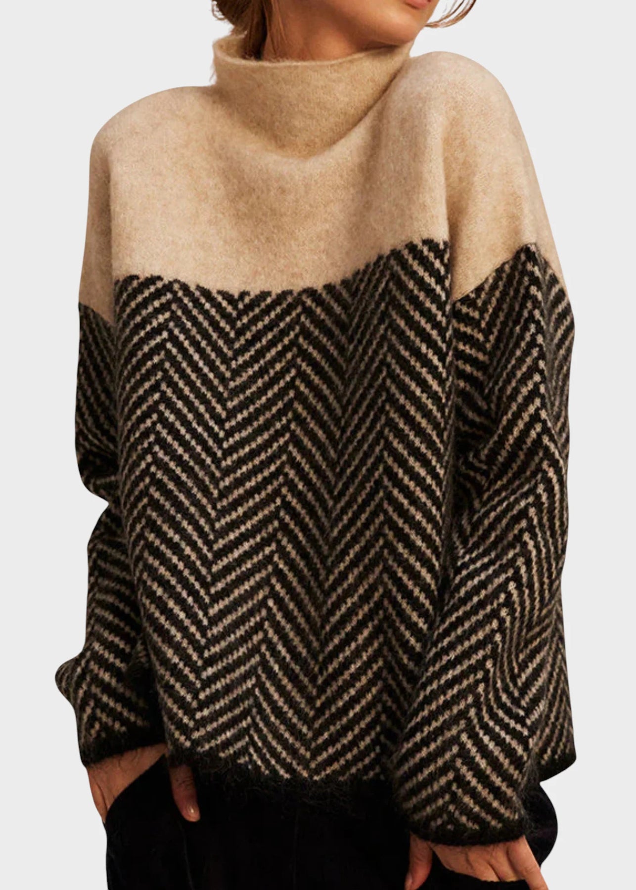 Z visokim ovratnikom, ki vas ohranja tople, in spuščenimi rameni za sproščen fit, se dobro ujema tako s hlačami kot s krili. Osvežite svojo jesensko garderobo in pustite močan vtis, kamorkoli greste.