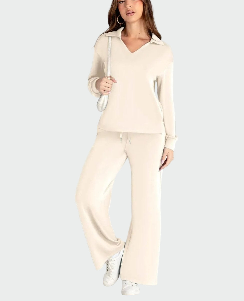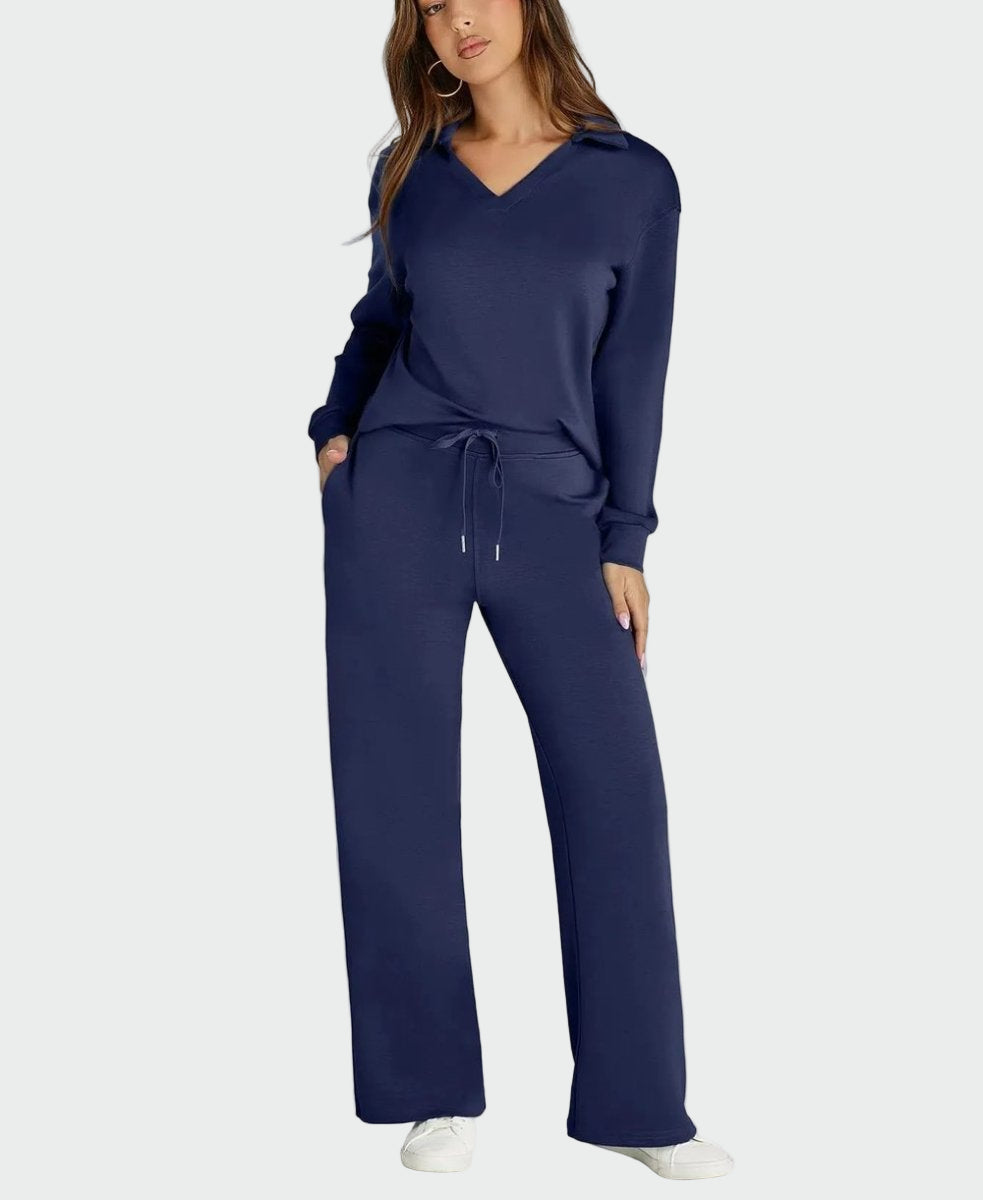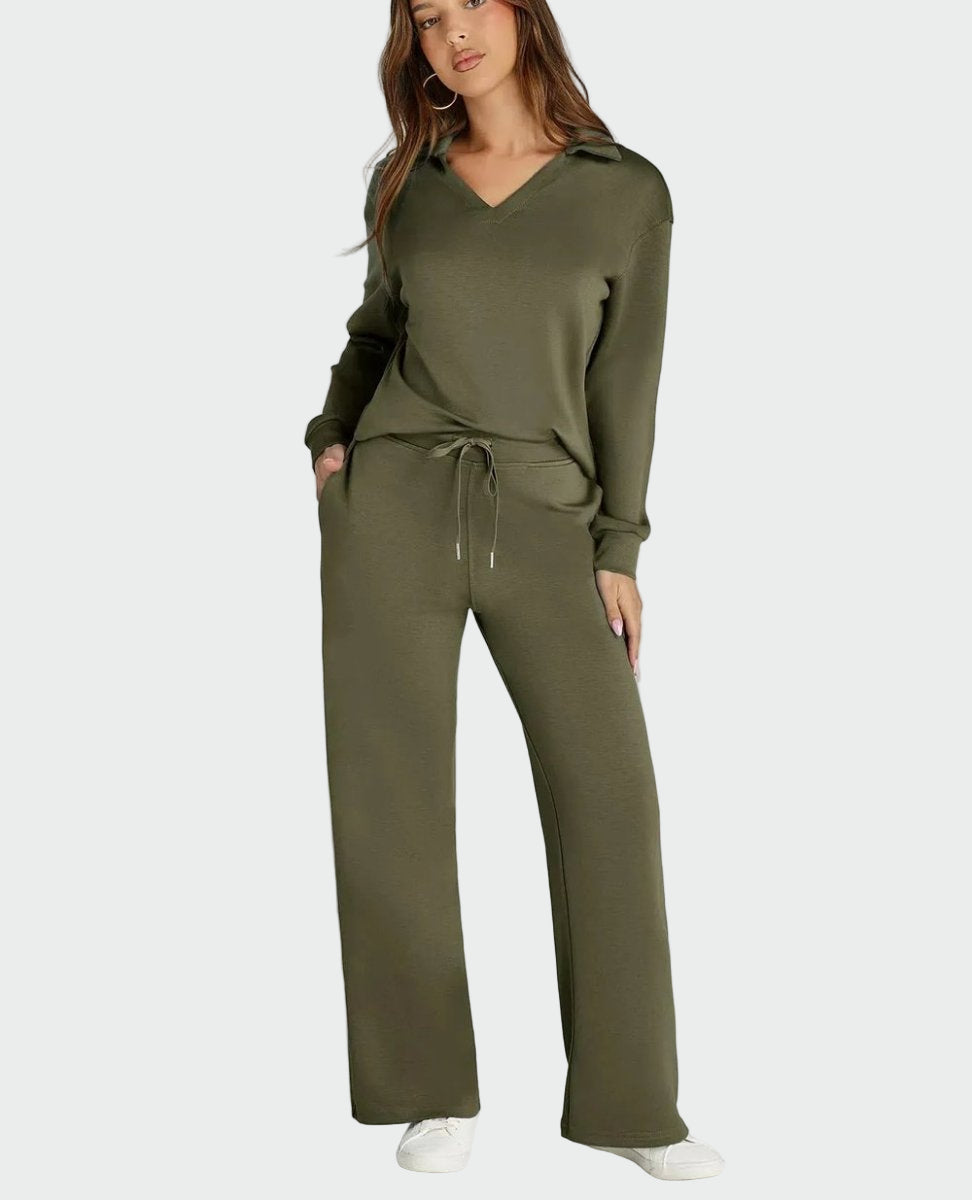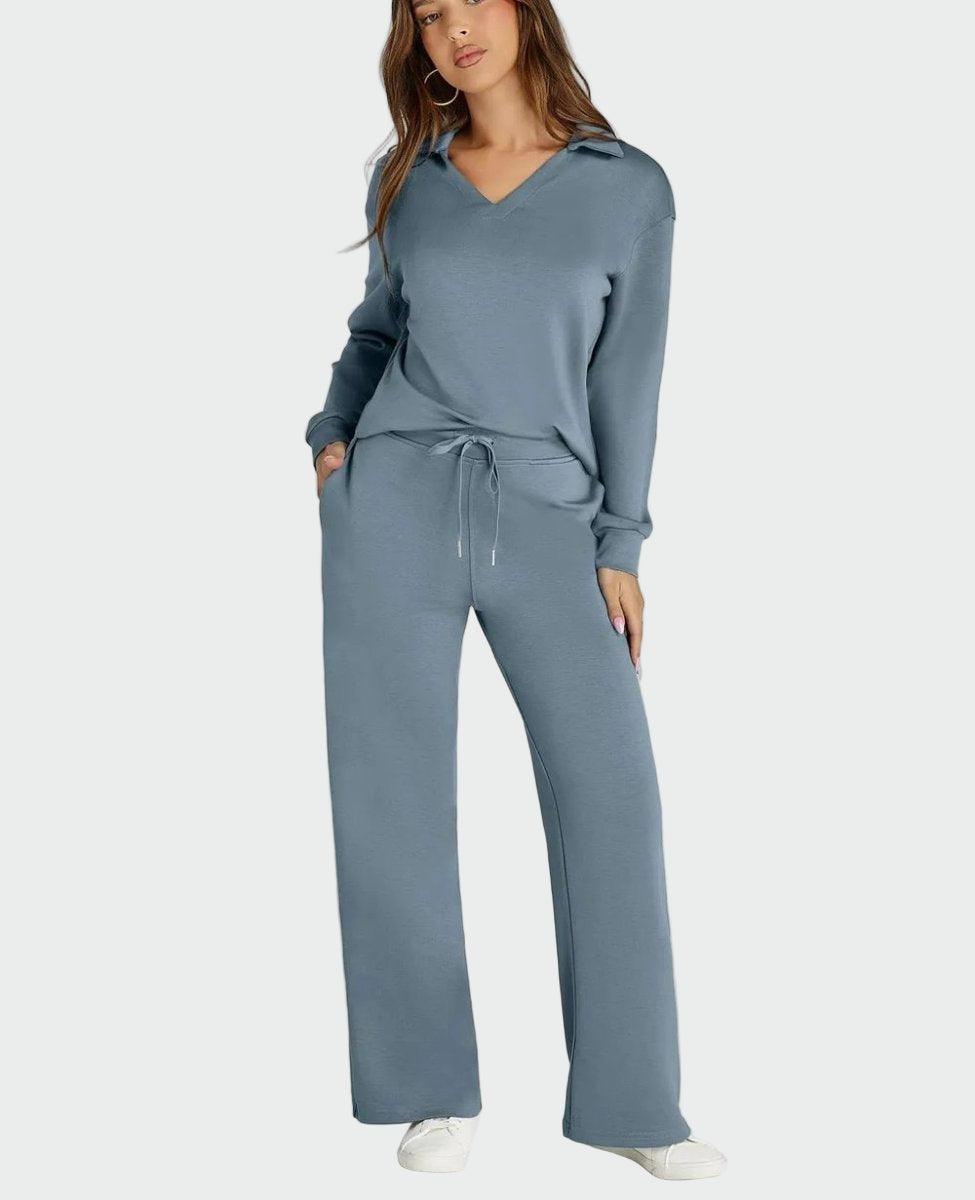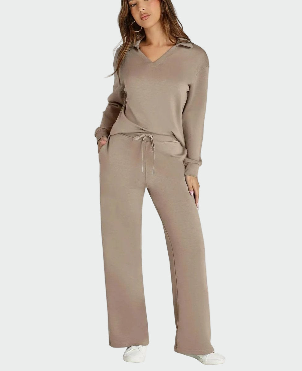 Praktičen in eleganten dvodelni komplet, zasnovan za udobje med potovanji. Ohlapen kroj nudi svobodo gibanja, medtem ko minimalistični stil omogoča vsakodnevno uporabo in posebne priložnosti.
