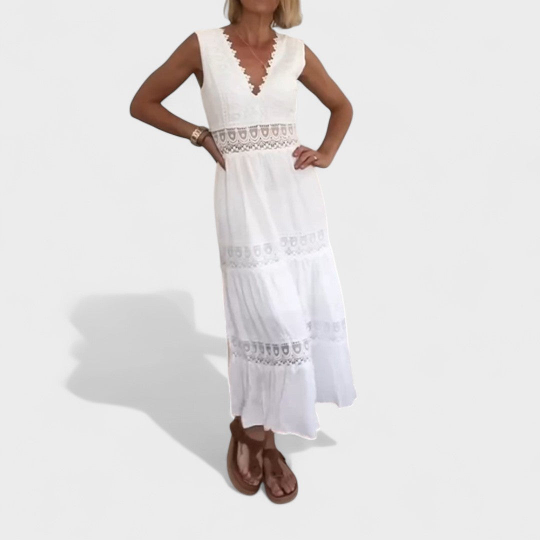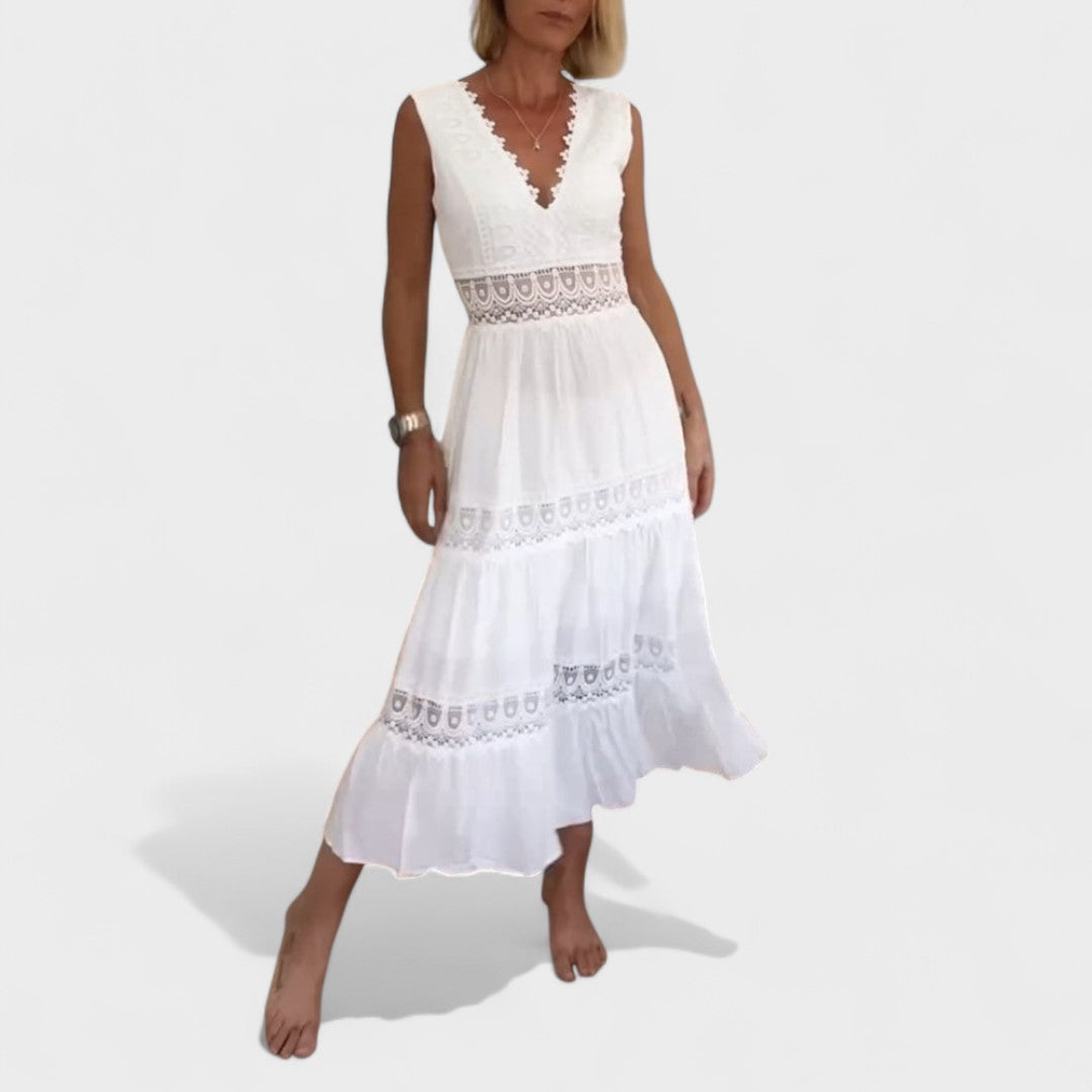 Elena - Elegantna Haljina od Čipke s V-Izrezom