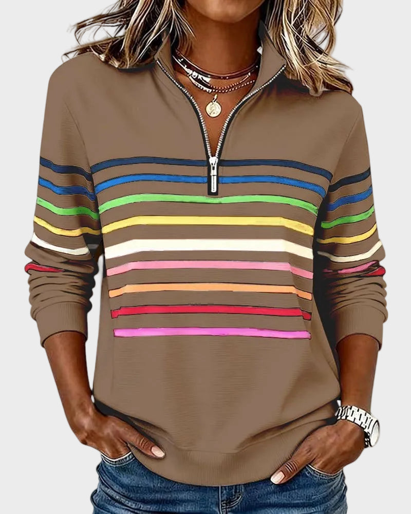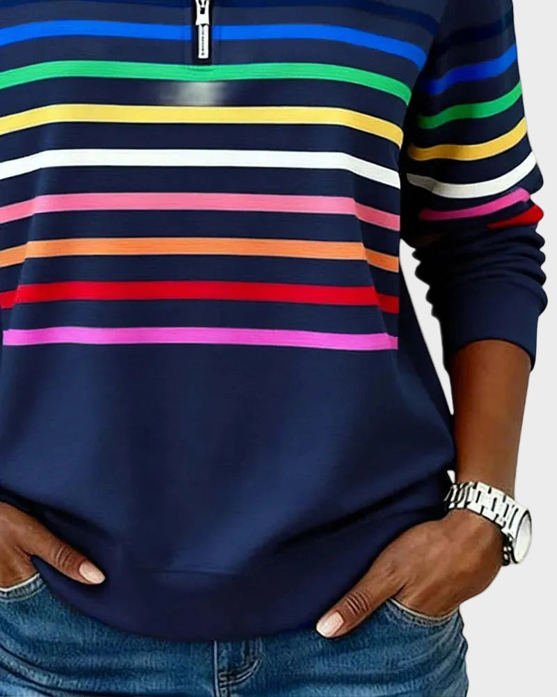 Jana - Pulover z zadrgo in mavričnimi črtami
