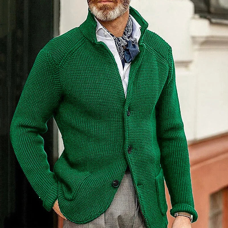 Strukturiran stil za hladne dni. Pletena jopica Johann združuje toploto cardigan-a z videzom urejene jakne. Razvita za moške, ki imajo radi klasičen slog, a kljub temu želijo izgledati moderno. Izrazit visok ovratnik, jasna gumbna zanka in strukturirana pletenina naredijo Johann vsestranskega spremljevalca za jesen in zimo.