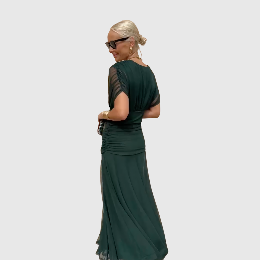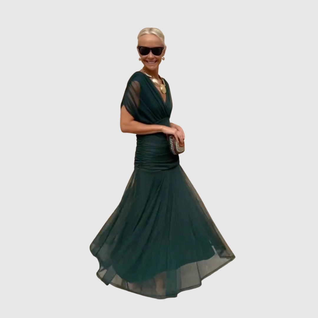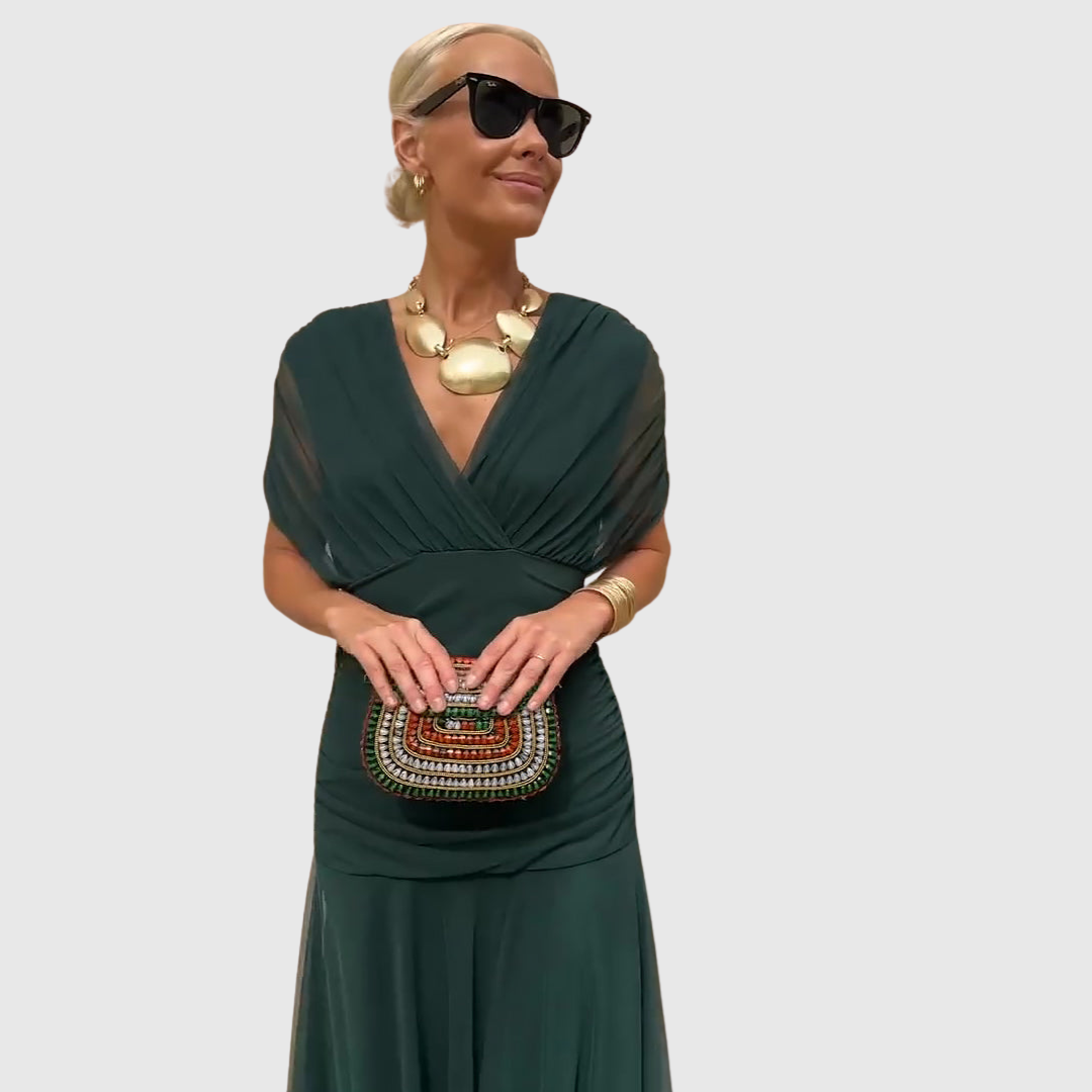 Zakaj vam bo všeč: Alma obleka je popolna kombinacija elegance in ženstvenosti. Dolg kroj in V-izrez subtilno poudarita vašo postavo.