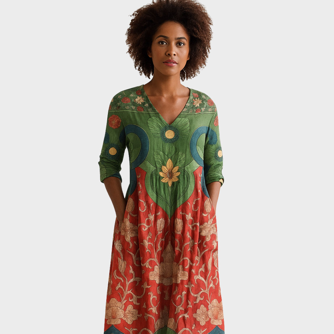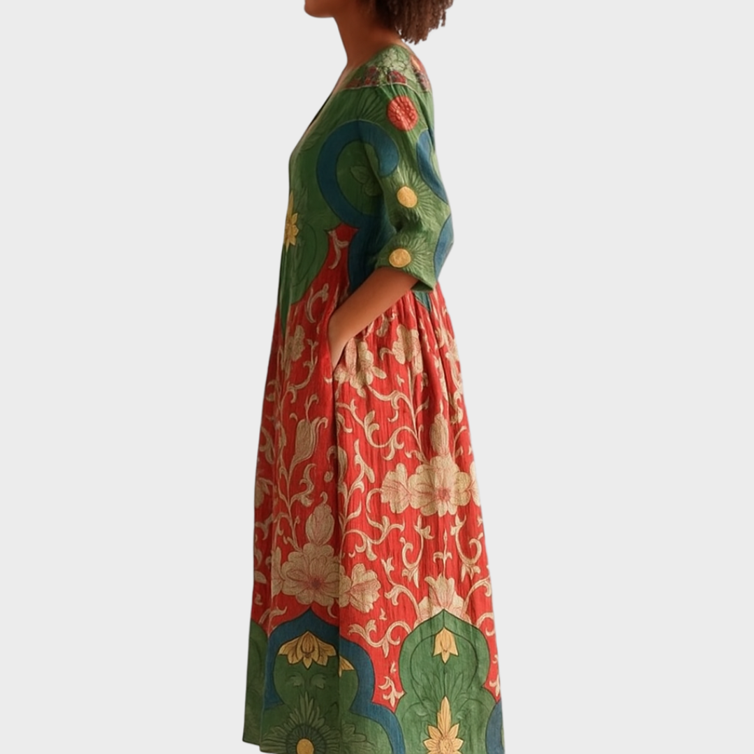 Klara - Dolga obleka s retro cvetličnim vzorcem