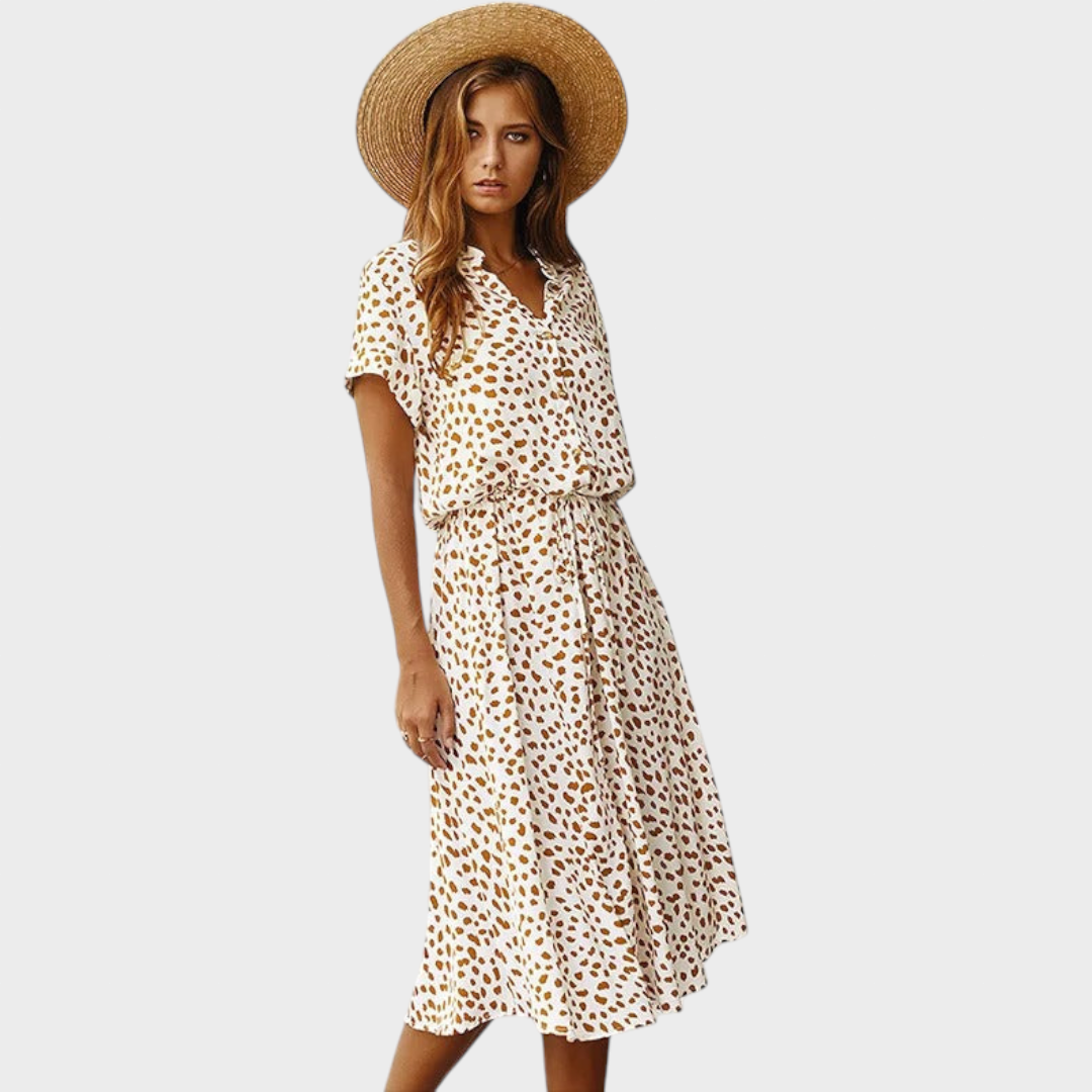 Odkrijte lahkotnost in zračnost te obleke, ki združuje udobje in sofisticiran stil. Idealna za sprehode po mestu, obisk plaže ali sproščena druženja.