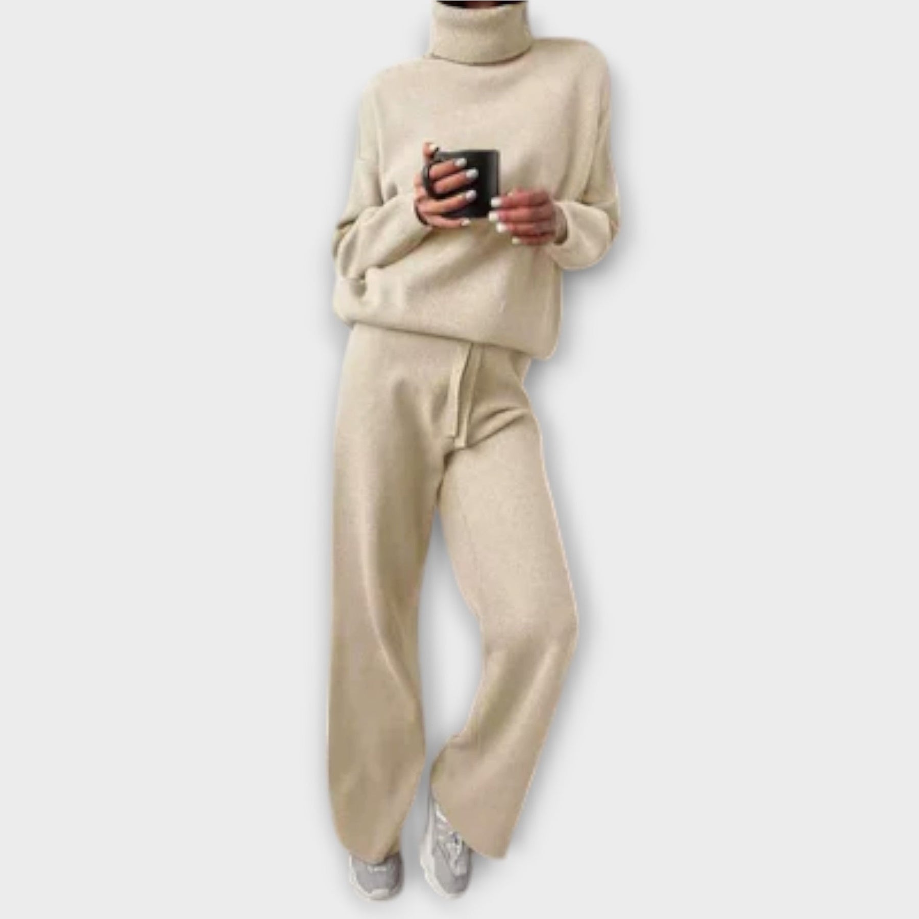Odkrijte popolno kombinacijo minimalističnega stila in ekstremnega udobja s tem elegantnim setom. Z lahkotnim krojem in visokim ovratnikom je idealen za hladnejše dni, kar ga dela popolnega za vsakodnevno nošenje.